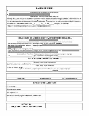 Сервисный центр, выполнивший доработки, оформляет заявление-декларацию с указанием всех внесенных изменений и прикладывает к нему необходимые сертификаты.
